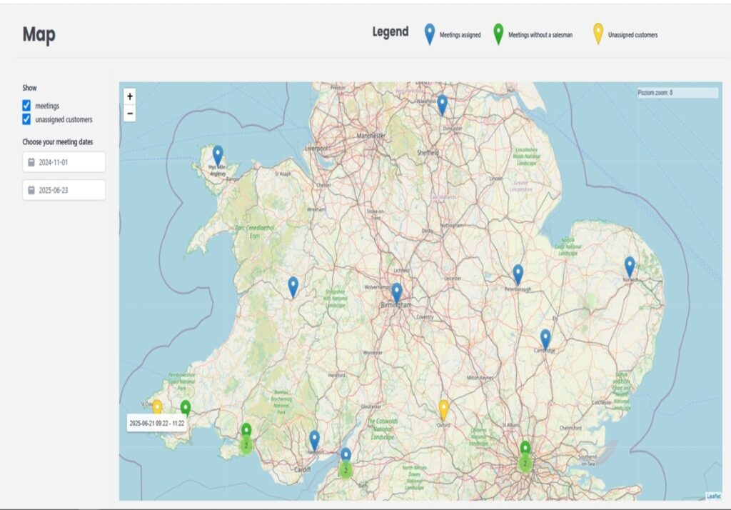 - Installation map – view of the location of all projects on a map, useful for both installators and sales representatives.