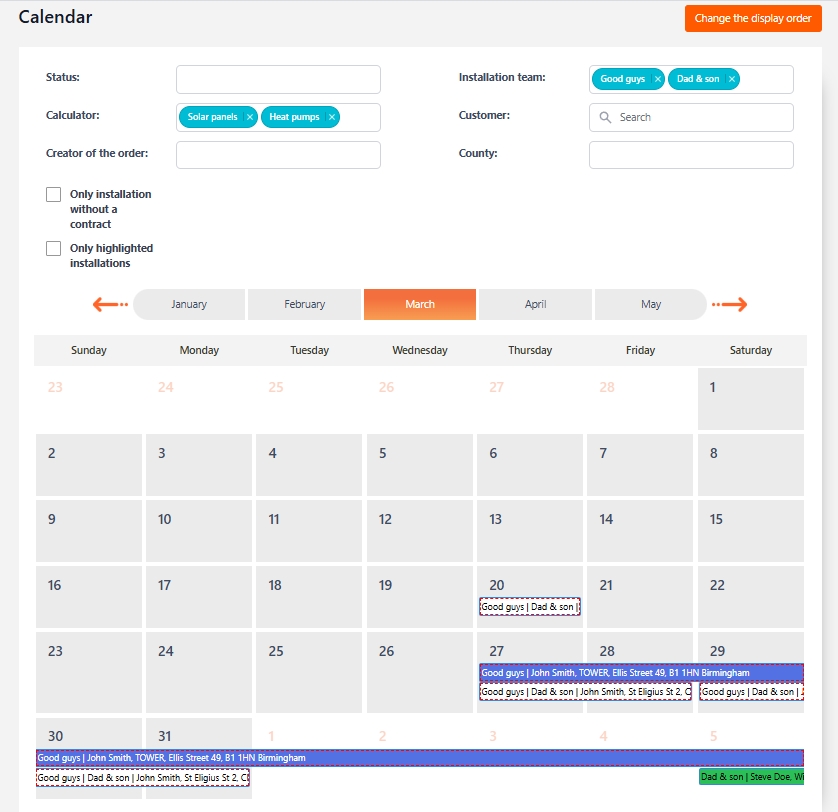 - Advanced calendar – function of filtering appointments by location, implementation status and assigned teams.