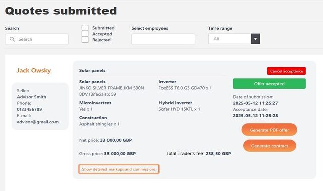 - Quotes Monitoring: Track the status of your quotes and measure conversion effectiveness.